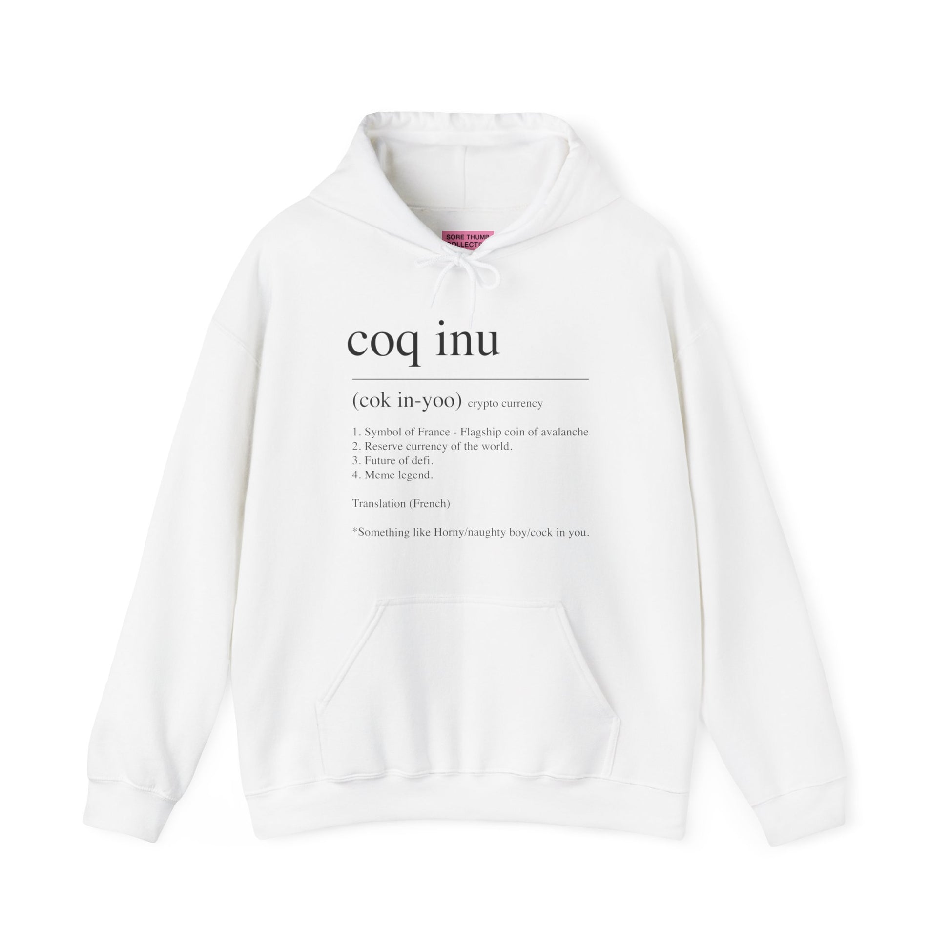 This COQ hoody is a design based on a dictionary definition. Lets face it, not many of your normie friends are going to understand why you are always talking about COQ, so save having to explain to everyone. It's hear, it's clear. We all love COQ.