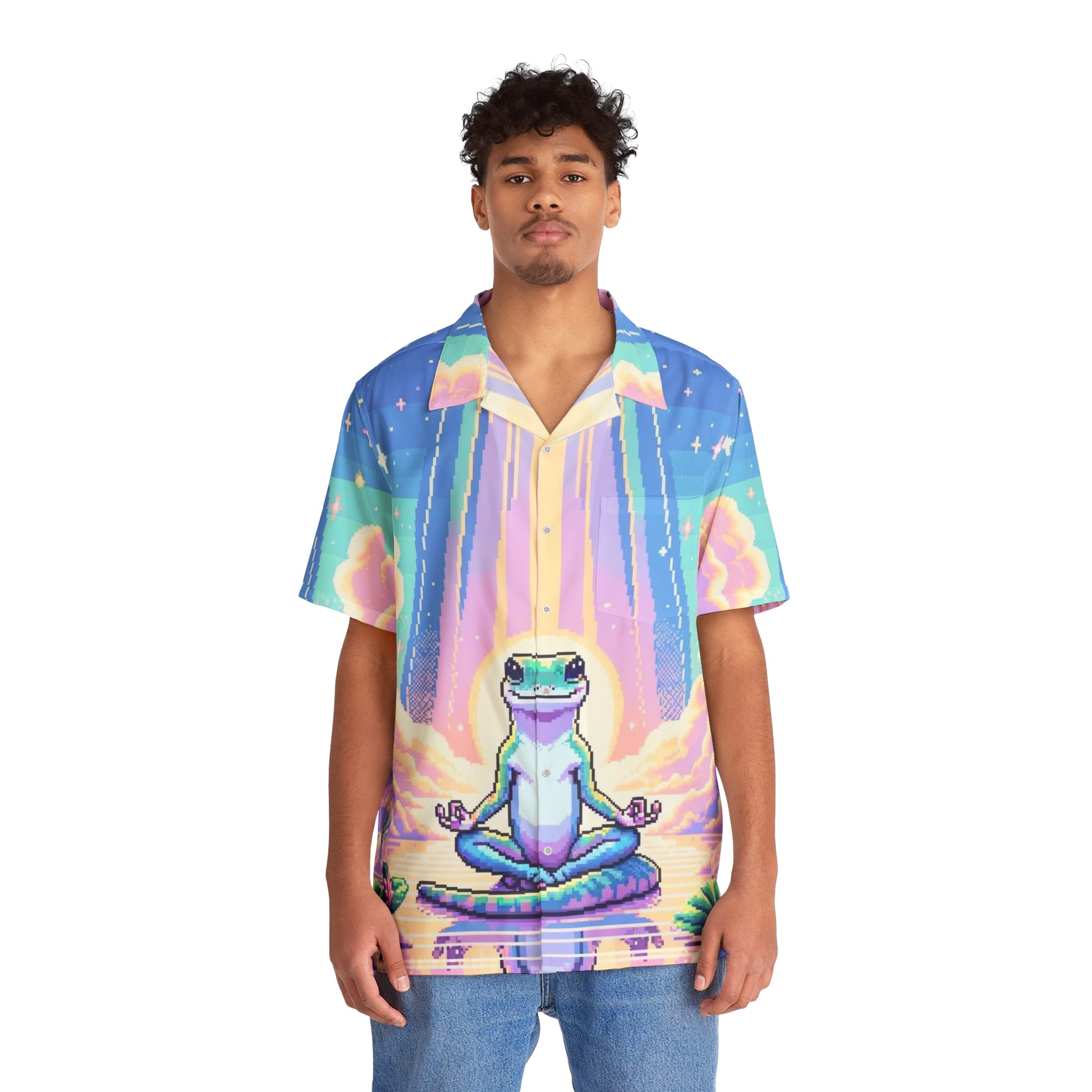 We loved this image as soon as we saw it. Super cool chilling gecko in a meditative pose. Paired with some great colours we thought it was perfect for a holiday shirt. Just get $GEC inu and chill.