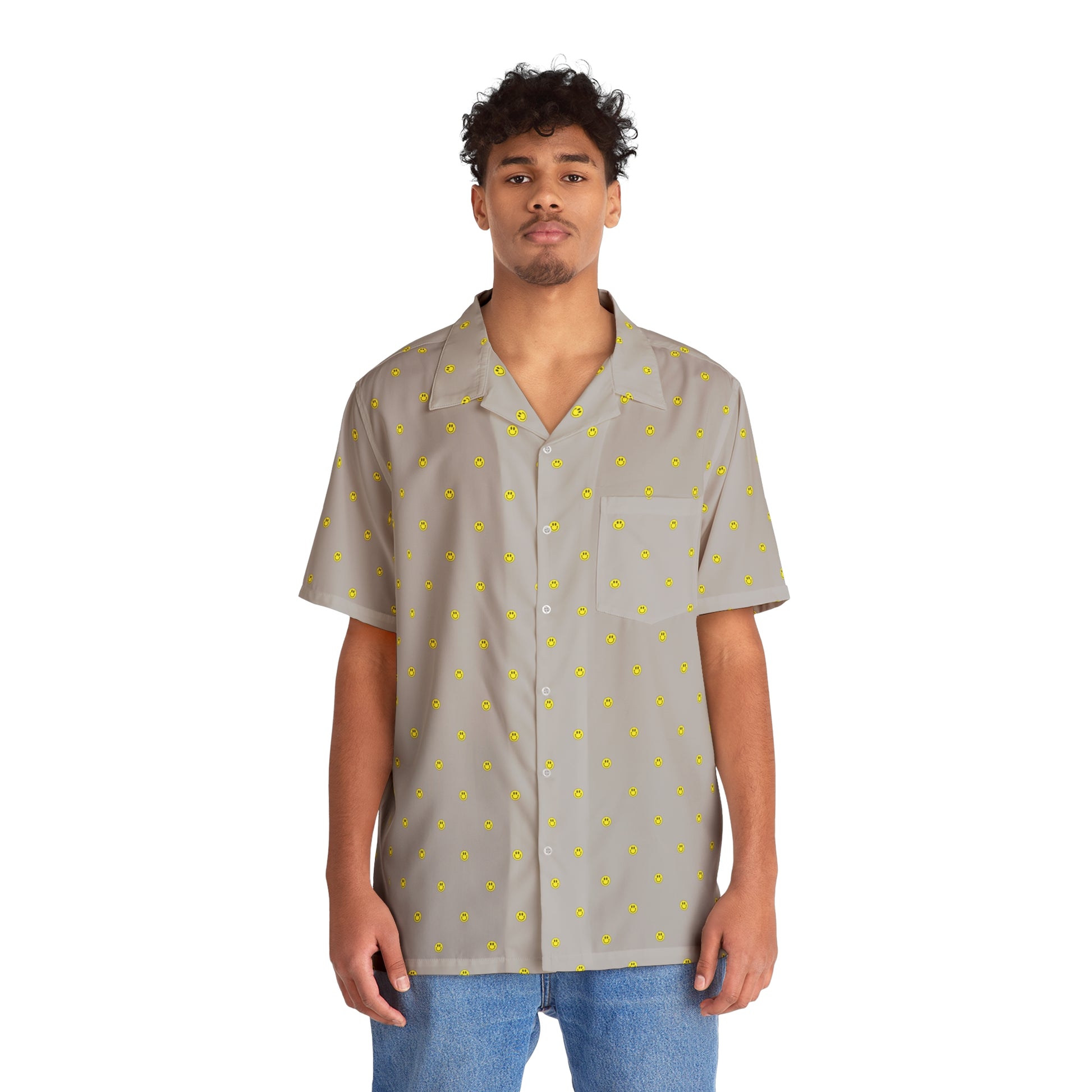 We've searched high and low for the perfect smiley shirt. One that can look stylish, look crisp, look cool. Be wearable for the beach, for a rave, or for any situation. This search has been a lifelong obsession and we never actually found a silly face shirt that was right. So, you know what. We've made our own. We created the polka dot style pattern and christened it the polka-smile. Do you see what we did there ?